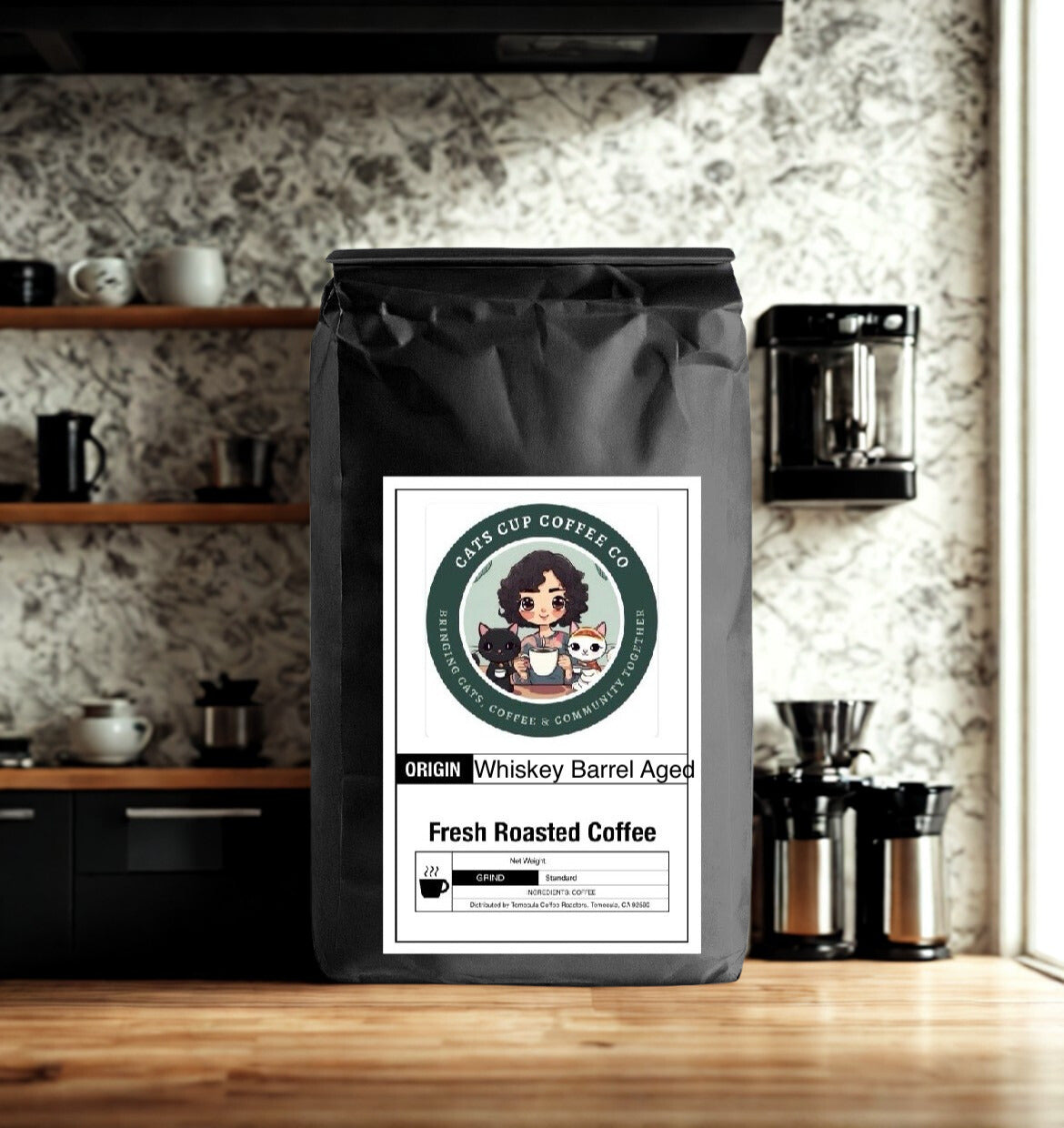 Single origin Guat. aged 30 days in a Bourbon barrel and then roasted to order